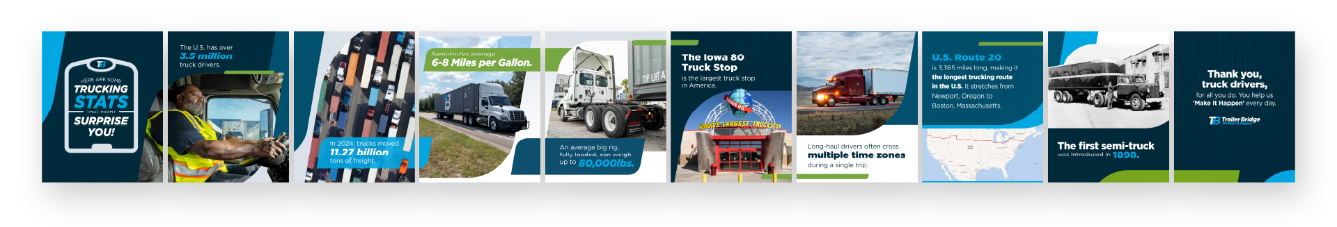 Trailer Bridge has consistently differentiated itself by challenging industry norms, and this philosophy guided the brand’s social media visual direction. Within the logistics industry, competitors tend to rely on repetitive visual conventions—stock photography, predictable imagery (trucks, ships, containers), and rigid, formulaic layouts—resulting in content that blends together.